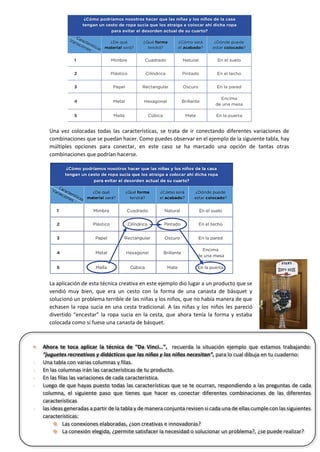El documento enseña a estudiantes de 3° grado a diseñar proyectos de emprendimiento utilizando la metodología de design thinking, centrándose en la fase de ideación. Se destaca la importancia de aplicar la técnica '¿cómo podríamos nosotros...?' para generar soluciones creativas a problemas definidos, promoviendo la generación de múltiples ideas sin restricciones. También se describe la técnica 'da vinci o morfológica' para combinar características de posibles productos a fin de encontrar soluciones innovadoras.