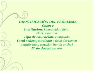 Este documento describe un proyecto para capacitar a 160 docentes de una universidad en Panamá en el uso de las tecnologías de la información y la comunicación (TIC). El proyecto consiste en cuatro fases de capacitación trimestrales sobre temas básicos, intermedios, avanzados y prácticos relacionados con las TIC. El objetivo es solventar el problema de que muchos docentes no tienen destrezas digitales y poder integrar mejor las TIC en la educación.