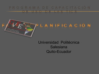 El Grupo A propone un proyecto de capacitación en el uso de TIC para docentes de la Universidad Politécnica Salesiana. El proyecto consiste en 5 módulos de capacitación dictados en la plataforma Moodle para enseñar a 434 docentes a crear aulas virtuales. El presupuesto total es de $76,510 y se implementaría en 10 meses desde mayo de 2009 hasta marzo de 2011.