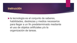 El documento describe las 5 fases del proceso tecnológico: 1) identificar el problema, 2) explorar y diseñar posibles soluciones, 3) planificar el trabajo, 4) construir el objeto, y 5) evaluar el objeto. También explica los documentos clave del proyecto técnico como la memoria, planos, planificación y presupuesto.