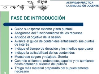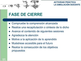 A la hora de preparar nuestra clase tenemos que tener en cuenta numerosos factores, con esta presentación veremos en que fases podemos dividir nuestra clase y que actividades son recomendables en cada una de ellas.