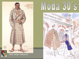 El documento presenta imágenes de moda de diferentes décadas del siglo XX, incluyendo 1920, 1926, 1929, 1933-1935, 1940-1941 y 1947, 1951-1954. Las imágenes muestran publicidad, catálogos, portadas de revistas y vestidos que ilustran las tendencias de moda de cada época.