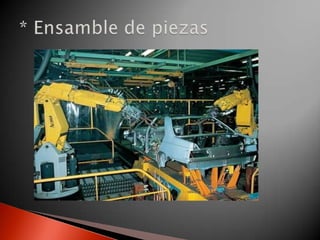La tecnología de grupo es una estrategia que ayuda a eliminar desperdicios mediante la agrupación de actividades y tareas similares. Los sistemas flexibles de manufactura permiten fabricar piezas de forma automática con flexibilidad en términos de producir nuevos productos con poco esfuerzo y tiempo. La ingeniería industrial busca mejorar procesos mediante el estudio de movimientos y tiempos para optimizar la producción.