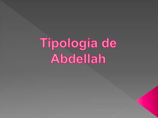 La biografía describe la trayectoria profesional de Faye Abdellah, una enfermera estadounidense que desarrolló un modelo para la resolución de problemas en enfermería. Se graduó en enfermería en 1942 y obtuvo grados avanzados en la Universidad de Columbia, trabajando posteriormente para el Servicio de Salud Pública de EE.UU. hasta su jubilación en 1989. Su modelo se basa en 21 problemas de enfermería relacionados con las necesidades físicas, emocionales y sociales del paciente.