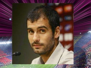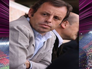 El documento proporciona una lista cronológica de los 39 presidentes del F.C. Barcelona desde su fundación en 1899 hasta la presidencia actual de Sandro Rosell desde 2010, así como información sobre los logros y trofeos obtenidos por el club a lo largo de su historia. También presenta breves descripciones del entrenador actual Josep Guardiola y la estrella del equipo Lionel Messi.