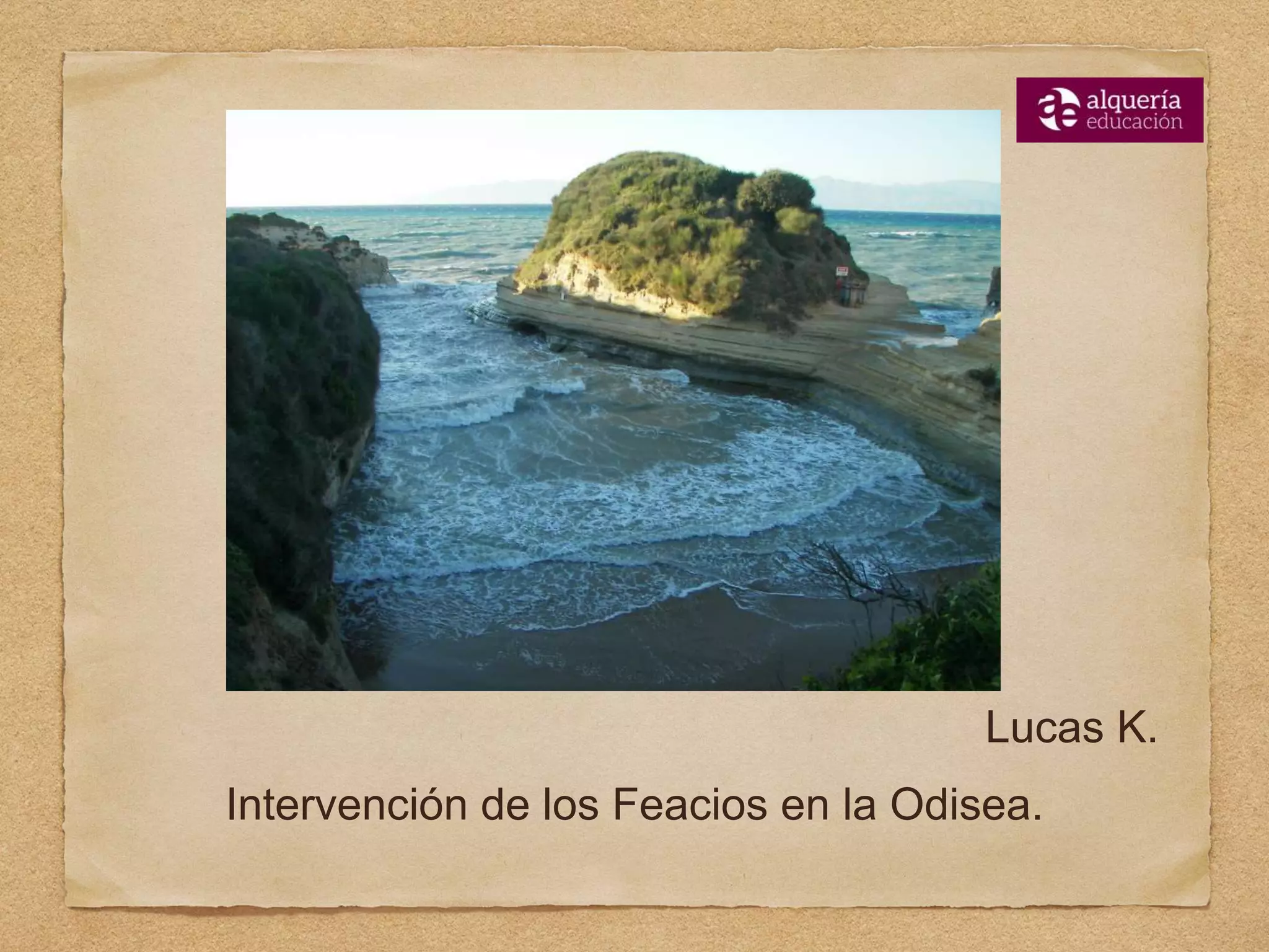 1) Odiseo llega exhausto a la costa de los Feacios tras naufragar durante dos días.