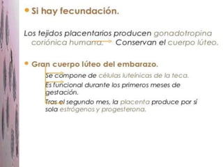 El documento describe las etapas de la fecundación, incluyendo la unión del espermatozoide y el óvulo, la capacitación del espermatozoide, la prevención de la poliesperma, y el transporte tubárico del óvulo fecundado. Contiene diagramas del ovario y el desarrollo del folículo y el óvulo, así como un diagrama de la eyaculación y la captación del espermatozoide.