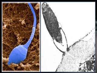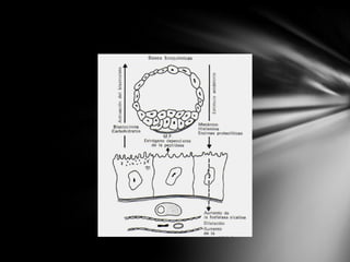 El documento describe los eventos necesarios para la fecundación y el desarrollo inicial del embrión humano. Brevemente, explica que la fecundación ocurre cuando el espermatozoide y el óvulo se unen en las trompas de Falopio. Luego, el cigoto experimenta segmentación para convertirse en una mórula, la cual se convierte en un blastocisto con una cavidad interna llena de líquido y dos capas de células. El blastocisto se implanta en el endometrio para continuar su desarrollo.