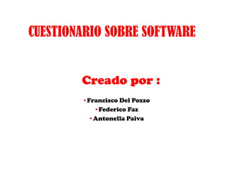 Este documento presenta preguntas sobre conceptos básicos de software y sistemas operativos. Se clasifica el software, se define un sistema operativo y sus principales tareas, y se explica que Windows es multitarea y multiusuario. También cubre temas como la organización de archivos, los drivers, Plug and Play, y la finalidad de los archivos DLL.