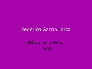 Este documento proporciona información biográfica sobre el poeta y dramaturgo español Federico García Lorca. Menciona que fue una de las figuras más influyentes de la literatura española del siglo XX y que escribió obras importantes de teatro y poesía. También señala que murió ejecutado al comienzo de la Guerra Civil Española debido a su afinidad con el bando republicano y su orientación sexual. El documento incluye extractos de algunas de sus obras más conocidas.