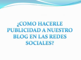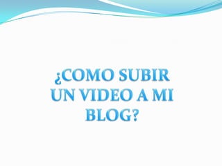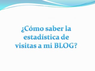 El documento proporciona instrucciones para crear una cuenta de Gmail y un blog de Blogger. Luego explica cómo agregar gadgets como calendarios y reproductores de música al blog, y cómo personalizar la cabecera del blog insertando una imagen y descripción. También describe cómo agregar gráficos estadísticos y videos de YouTube a las entradas del blog.