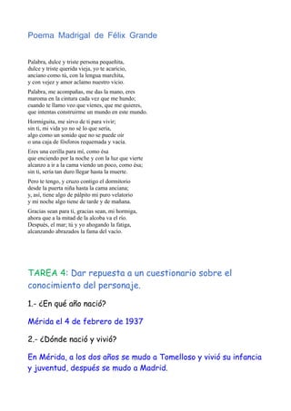 Félix Grande fue un poeta, flamencólogo y crítico literario español nacido en 1937 en Mérida, Extremadura. Se destacó por su obra poética que incluye títulos como B., Col. El Bardo (1966) y Blanco Spirituals (1967), así como por sus ensayos sobre flamenco y literatura hispanoamericana como Agenda flamenca (1987) y Once artistas y un Dios (1986). Recibió varios premios literarios como el Premio Adonais en 1963 por su libro de poemas Las pied