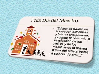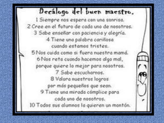 El documento es una felicitación para la maestra Gladys por el Día del Maestro, agradeciéndole por enseñar, ayudar, guiar a sus alumnos y pasar horas con ellos mostrándoles el buen camino.