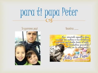 Este documento es una carta de una persona para varios miembros de su familia, incluyendo a sus padres, abuelos, tíos y padrinos, expresando su cariño y amor por cada uno de ellos. La persona les desea a todos un feliz día y les agradece por ser parte importante de su vida.