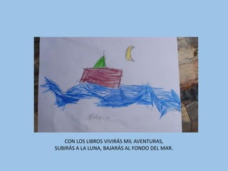 Los libros permiten vivir miles de aventuras imaginarias, viajando a lugares lejanos como la luna o el fondo del mar, luchando contra piratas y dragones o salvando reinos enteros. Este poema celebra el día del libro destacando cómo la lectura permite experimentar mundos fantásticos y aventuras épicas que de otra forma nunca se podrían vivir.
