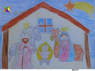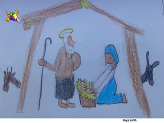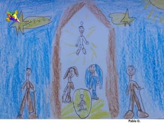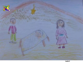 Los alumnos de 4o EP celebran el nacimiento de Jesús y desean felicitar la Navidad con ilustraciones realizadas por ellos mismos. El mensaje incluye un enlace a su sitio web y un saludo de la profesora Trinidad Ruiz López. Se expresa un deseo sincero de feliz Navidad.