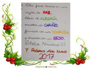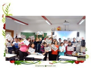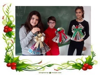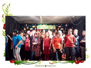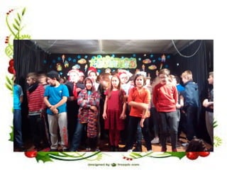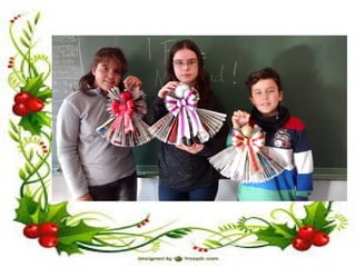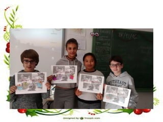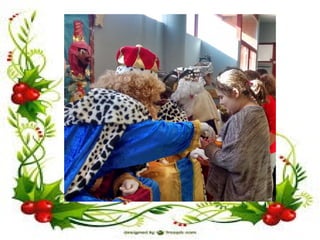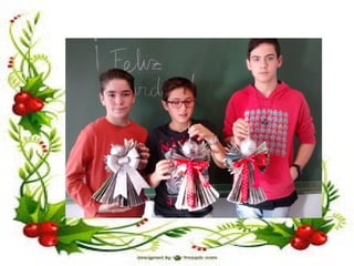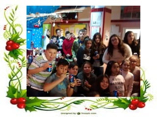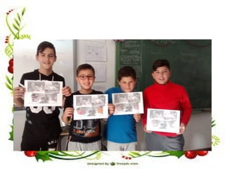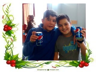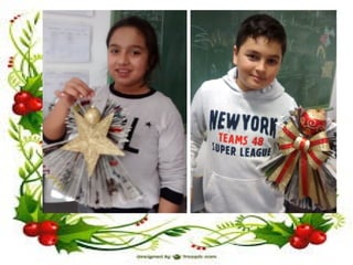 Los niños realizaron adornos navideños como tarjetas y ángeles. Actuaron en un teatro cantando villancicos y rapeando. Recibieron un diploma por ser grandes lectores. Esperan ansiosamente la llegada de los Reyes Magos y entregarán sus cartas. Celebrarán con una fiesta bailando y disfrutando de la compañía de sus compañeros.