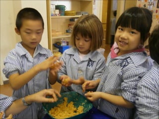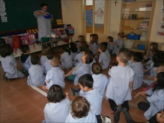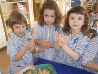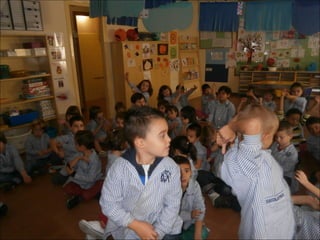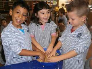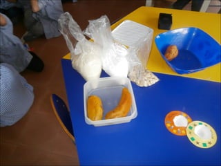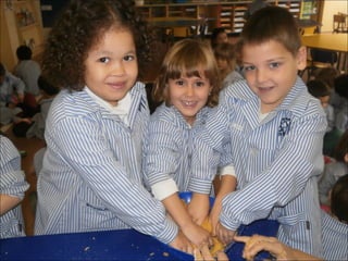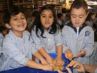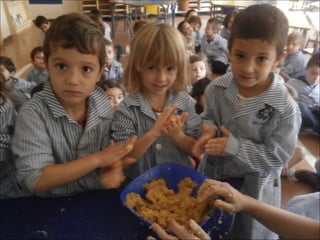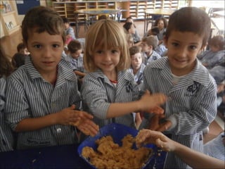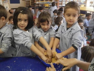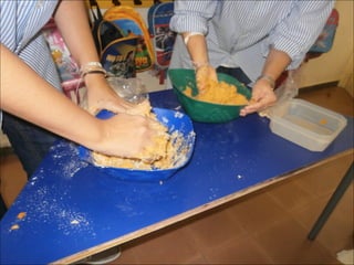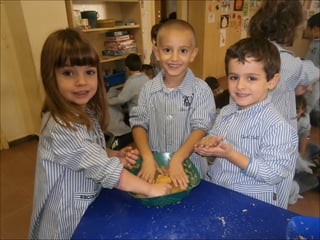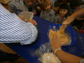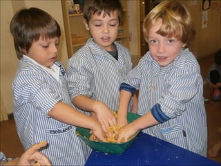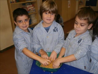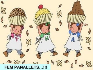 El documento describe las fotos de un álbum que muestran el proceso de hacer panallets. Las fotos muestran a un grupo amasando harina, azúcar, almendras picadas y boniato para hacer panallets. Luego de amasar y dar forma, los panallets están listos para comer.