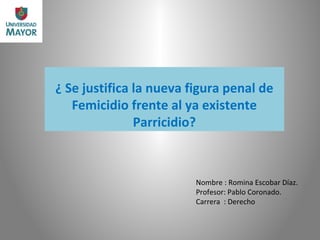 El documento discute si la figura penal de femicidio está justificada frente al ya existente delito de parricidio. Explica que la ONU tipificó el femicidio en 2001 como el asesinato de mujeres como resultado extremo de la violencia de género. Aunque Chile reconoció y tipificó el femicidio recientemente en 2010, modificando su código penal, la violencia contra la mujer que resulta en muerte ha sido un problema de larga data. El documento también analiza las cifras de femicidios en Chile y las compara con otros países