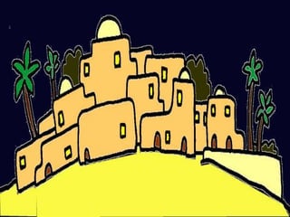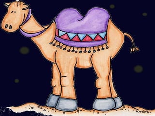 El documento habla sobre una estrella en el cielo que brilla con destellos y alumbra el camino de los tres reyes magos que viajan en camello. La estrella guía a los reyes hasta el pesebre donde nace Jesús en Belén.