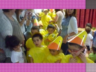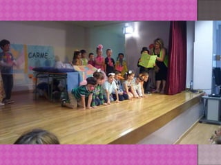 El documento describe el festival de fin de curso de Educación Infantil que tuvo lugar en el CEIP A Maía de Bertamiráns. Los niños de 3, 4 y 5 años participaron con canciones, recitaciones y representaciones ante una gran audiencia de familiares. Aunque al principio algunos grupos tenían miedo escénico, finalmente todos se soltaron y disfrutaron del evento, que fue presentado por un alumno de 5 años.