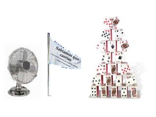 Este documento presenta varias propuestas creativas para una campaña publicitaria del Fiat 500 que utilizará el eslogan "Sabíamos que caerías". La campaña incluye colocar un castillo de cartas junto a un ventilador para derribarlo, regalar globos con información sobre el coche, exhibir un coche con llaves inalcanzables, y esparcir billetes falsos con el mensaje publicitario. El objetivo es que la gente comente la campaña y no pueda resistirse a conducir el nuevo Fiat 500.