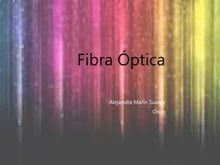 El documento describe la historia y funcionamiento de la fibra óptica. La fibra óptica se desarrolló en la década de 1970 y permite transmitir luz a través de filamentos de vidrio delgados para comunicaciones de larga distancia. La fibra óptica tiene ventajas como un ancho de banda muy alto y bajas pérdidas de señal en comparación con los cables de cobre.