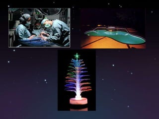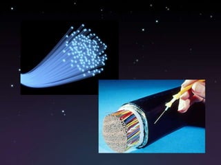 Este documento describe la fibra óptica, incluyendo su historia, diseño, aplicaciones e importancia. La fibra óptica es un medio de transmisión de datos que utiliza hilos finos de vidrio u otros materiales transparentes para enviar pulsos de luz que representan la información. Se desarrolló en las décadas de 1960 y 1970 y ahora se usa ampliamente en telecomunicaciones debido a su alta velocidad y baja susceptibilidad a interferencias.