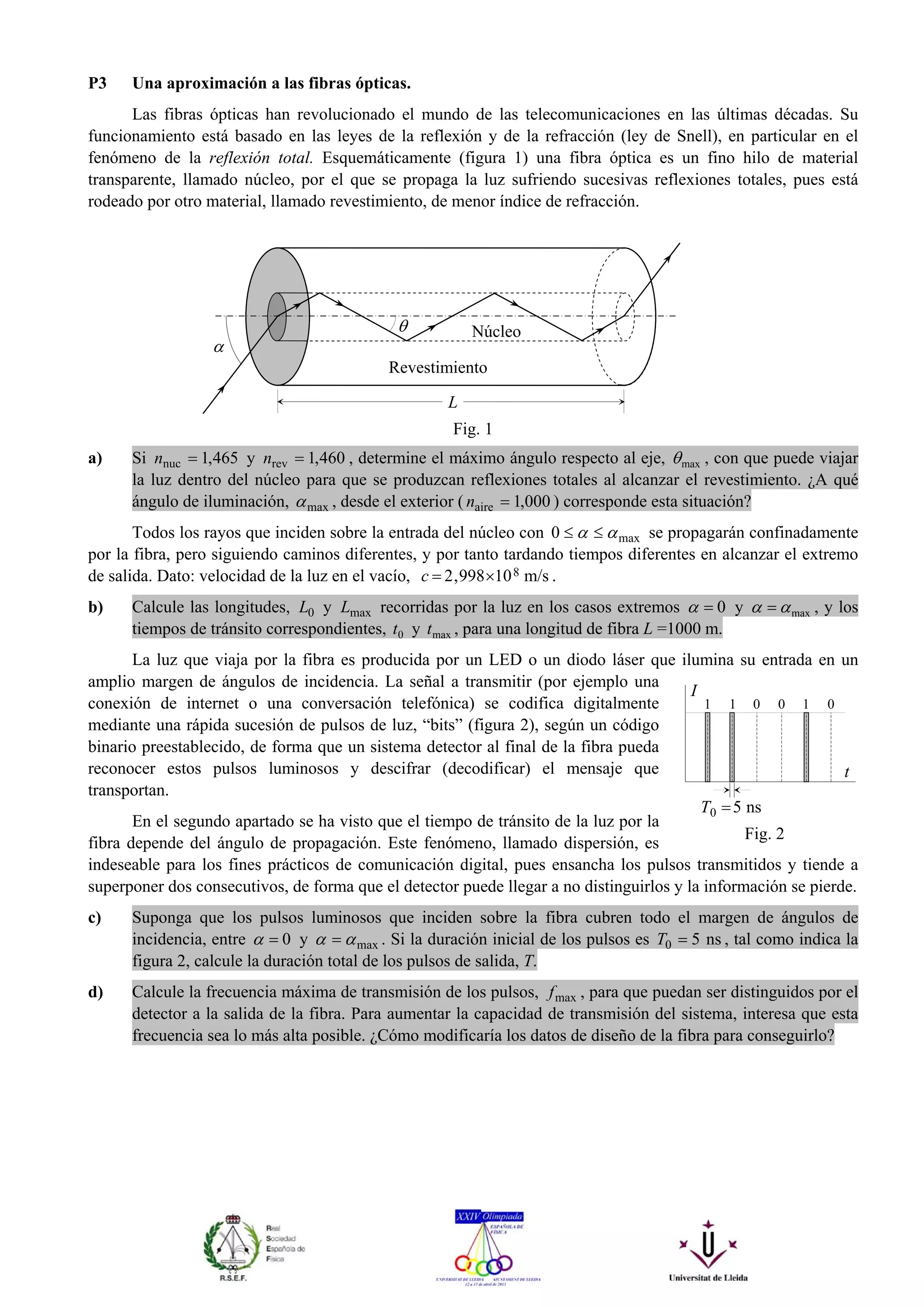 Las fibras ópticas transmiten luz a través de sucesivas reflexiones totales en el interior del núcleo, rodeado por un revestimiento de menor índice de refracción. La luz que incide a diferentes ángulos dentro de la fibra tarda diferentes tiempos en llegar a la salida, ensanchando los pulsos luminosos y dificultando la transmisión de información. Reducir la diferencia de índices entre el núcleo y revestimiento permite aumentar la frecuencia máxima de transmisión de pulsos.