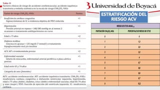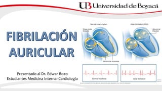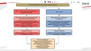 1) El documento presenta información sobre la fibrilación auricular, incluyendo su definición, clasificación, factores de riesgo, mecanismos, tratamiento y escalas de riesgo de accidente cerebrovascular.