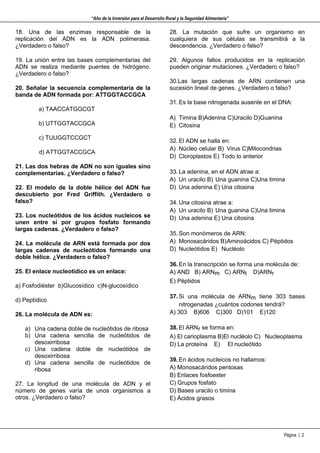 El documento resume los conceptos básicos sobre ácidos nucleicos como el ADN y el ARN. Explica que el ADN se encuentra en forma de doble hélice y contiene las bases nitrogenadas adenina, guanina, citosina y timina. El ARN se forma a partir de la transcripción del ADN y contiene la base uracilo en lugar de timina. También describe las diferencias entre el ADN y ARN de células procariotas y eucariotas.