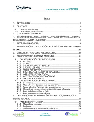 La ficha ambiental para la estación base celular 'Bellavista - Calderón' busca evaluar y gestionar los impactos ambientales derivados de su construcción, operación y cierre. El proyecto, elaborado por Telefónica, cumple con la normativa ambiental ecuatoriana y se someterá a consulta pública para garantizar la participación ciudadana. Los resultados indican que los impactos son manejables y que se pueden mitigar a través de un plan de manejo ambiental adecuado.