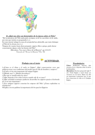 El clima de Egipto es seco y caluroso, y su suelo árido y desértico. El río Nilo es fundamental para la vida en Egipto, ya que inunda la región cada año depositando un limo fértil que permite la agricultura. Aunque los antiguos egipcios no conocían los orígenes del Nilo y atribuían sus inundaciones a los dioses, el río ha sido vital para la civilización egipcia al hacer posible la agricultura y el desarrollo económico.
