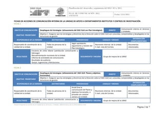 El documento presenta el Plan de Comunicación 2012 del Sistema Integrado de Gestión de la Calidad (SIGC-SUA) de la Universidad de Jaén, con fichas que describen acciones específicas para la comunicación interna. Se enfocan en asegurar que las estrategias de gestión de calidad sean entendidas y aplicadas por todas las personas involucradas, promoviendo la participación activa y la mejora continua. Incluye mecanismos para retroalimentación y seguimiento de las actividades de comunicación y desempeño del sistema.