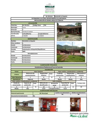 La Hacienda La Coqueta es una casa de hacienda ubicada en la vereda El Cedrón del municipio de Tarso, Antioquia (Colombia). Data del periodo de colonización antioqueña/republicano aunque se desconocen la fecha exacta de construcción y el diseñador. Originalmente formaba parte de la hacienda La Linda y fue una gran productora de caña de azúcar. A pesar de haber sufrido modificaciones, conserva sus espacios originales como pisos de piedra, corredores laterales y cocina. Se