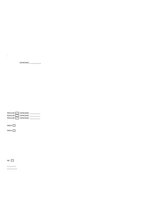 Este documento es una ficha técnica para un sistema CRM que recopila información sobre las especificaciones de hardware y software de una computadora de un cliente. Incluye detalles sobre el procesador, memoria RAM, discos duros, unidades de CD/DVD, tarjetas de video y red, teclado, mouse, sistema operativo y software instalado. El técnico recopila esta información para documentar el estado inicial del equipo del cliente antes de cualquier servicio.