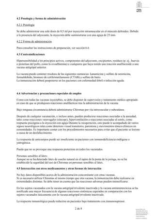 Este documento presenta la ficha técnica de la vacuna antigripal Chiromas. Describe la composición, forma farmacéutica e indicaciones de la vacuna. Detalla los ensayos clínicos realizados que muestran una mayor incidencia de reacciones leves con Chiromas comparado con vacunas sin adyuvante. También resume los posibles efectos adversos reportados y dos estudios observacionales que sugieren que Chiromas reduce el riesgo de hospitalización por gripe o neumonía en personas mayores.