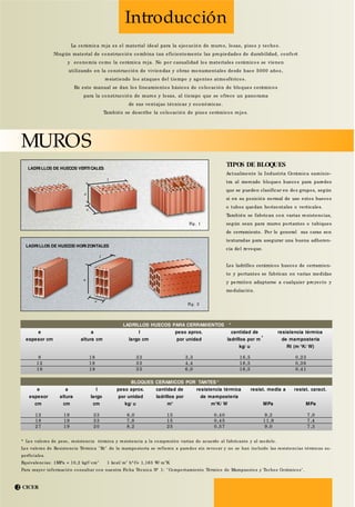 Este documento proporciona lineamientos para la colocación de cerámica roja para la construcción de muros, losas y pisos. Explica que la cerámica roja es un material ideal debido a su durabilidad, comodidad y economía. Luego describe los tipos de ladrillos cerámicos, cómo humedecerlos antes de colocarlos, y los pasos para la colocación correcta de las hiladas, incluyendo el uso de mortero, juntas y capas aisladoras hidrófugas. Finalmente, resalta algunas