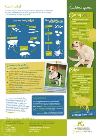 El documento habla sobre tres parásitos externos comunes en mascotas: pulgas, garrapatas y ácaros. Estos parásitos se alimentan de la sangre de las mascotas y pueden transmitirles enfermedades. También pueden transmitir enfermedades a los humanos. El documento describe el ciclo de vida de estas plagas y formas de prevenir y tratar las infestaciones.