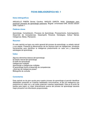 Este capítulo presenta una visión general del proceso de aprendizaje, sus etapas y tipos de inteligencias. Explica que el aprendizaje se da de forma natural y que existen diversas inteligencias que se pueden identificar para desarrollar estrategias de aprendizaje acordes a cada persona. Además, analiza la relación entre el aprendizaje y el desarrollo de competencias.
