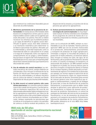 Para que ocurra una enfermedad se requiere la presencia simultánea de un hospedero susceptible, un medio ambiente favorable y un agente causal. El manejo integrado de enfermedades (MIPE) busca mantener los niveles de enfermedad por debajo del umbral económico mediante el uso de prácticas culturales preventivas, monitoreo, control mecánico y químico como último recurso. Las buenas prácticas agrícolas son también importantes para asegurar la inocuidad de los productos y proteger el