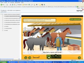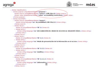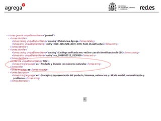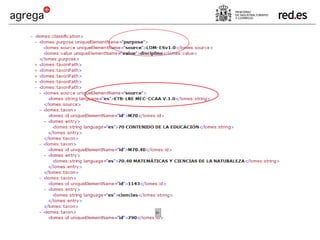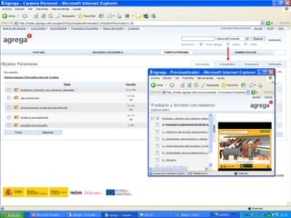 Agrega es un proyecto que crea un estándar para contenidos educativos digitales y una red federada de repositorios para compartir dichos contenidos de manera normalizada y accesible. Los contenidos son multimedia, interactivos, multilingües y accesibles, y siguen estándares como SCORM y LOM-ES para su empaquetado, catalogación y reutilización en diferentes plataformas educativas. El objetivo final es facilitar que la comunidad educativa comparta y reutilice contenidos digitales de calidad.
