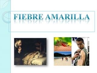 La fiebre amarilla es una enfermedad zoonótica transmitida por mosquitos, caracterizada por daño multiorgánico y una mortalidad que puede alcanzar el 50% en epidemias. Se presenta en tres etapas y no tiene un tratamiento específico, siendo la prevención a través de la vacunación y evitar las picaduras de mosquitos crucial. Se registran aproximadamente 200,000 casos y 30,000 muertes anualmente, principalmente en África y Sudamérica.