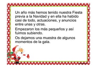 La escuela primaria CEIP San Pedro Apóstol celebró su fiesta anual previa a la Navidad, con actuaciones y anuncios de los estudiantes de diferentes grados. La fiesta incluyó presentaciones de los alumnos más pequeños hasta los mayores y ofreció una muestra de algunos momentos destacados del evento.
