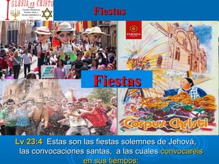 El documento describe las fiestas solemnes de Jehová y la importancia de la obediencia a Dios sobre la de los hombres, destacando la relevancia de ciertas festividades en la fe. Se menciona la necesidad de alejarse de los falsos testimonios y la adoración a otros dioses, así como la observancia del día de reposo. También se abordan eventos contemporáneos, como la llegada del Ekeko a Bolivia, que invita a reflexionar sobre la autoridad espiritual y las tradiciones culturales en contraste con la fe bíblica.