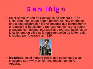 Calatayud celebra varias fiestas a lo largo del año, siendo las principales San Iñigo en junio, San Roque en agosto y la Virgen de la Peña en septiembre. La fiesta de San Roque es la más importante y cuenta con diez peñas que participan en distintos actos como corridas de toros y desfiles. Algunas de las peñas más destacadas son Peña La Bota, fundada en 1978, Peña Solera fundada a finales de 1969 y Peña Garnacha fundada en 1986. La Semana Santa también es