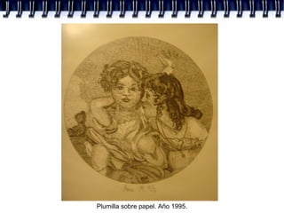 El documento lista diferentes obras de arte realizadas entre 1995 y 2012, incluyendo acuarela y lápiz, plumilla, y lápiz sobre papel en 1995 y 1997, sanguina en 1998, y lápiz acuarerable sobre papel en 2012.