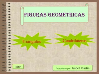 El documento describe las figuras geométricas del triángulo y el cuadrilátero. Explica los elementos que componen cada figura como los lados, vértices, ángulos, altura y diagonal. También clasifica los triángulos y cuadriláteros según sus características y describe cómo calcular el área de cada figura.