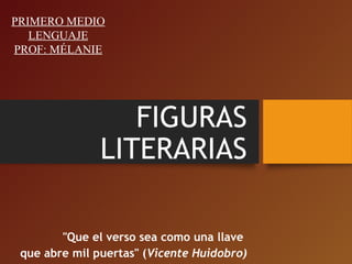 Este documento presenta una introducción a las figuras literarias o retóricas, que son procedimientos lingüísticos que buscan dar mayor expresividad al lenguaje. Explica que las figuras se dividen en tres grupos: figuras semánticas, figuras de pensamiento y figuras de dicción. Luego define y da ejemplos de varias figuras literarias específicas como la comparación, la metáfora, la sinestesia, la hipérbole, la personificación, la antítesis, la ironía, el epíteto, la aná