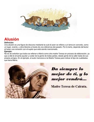 Una alusión esuna figura de discurso mediante la cual el autor se refiere a un tema en concreto, como